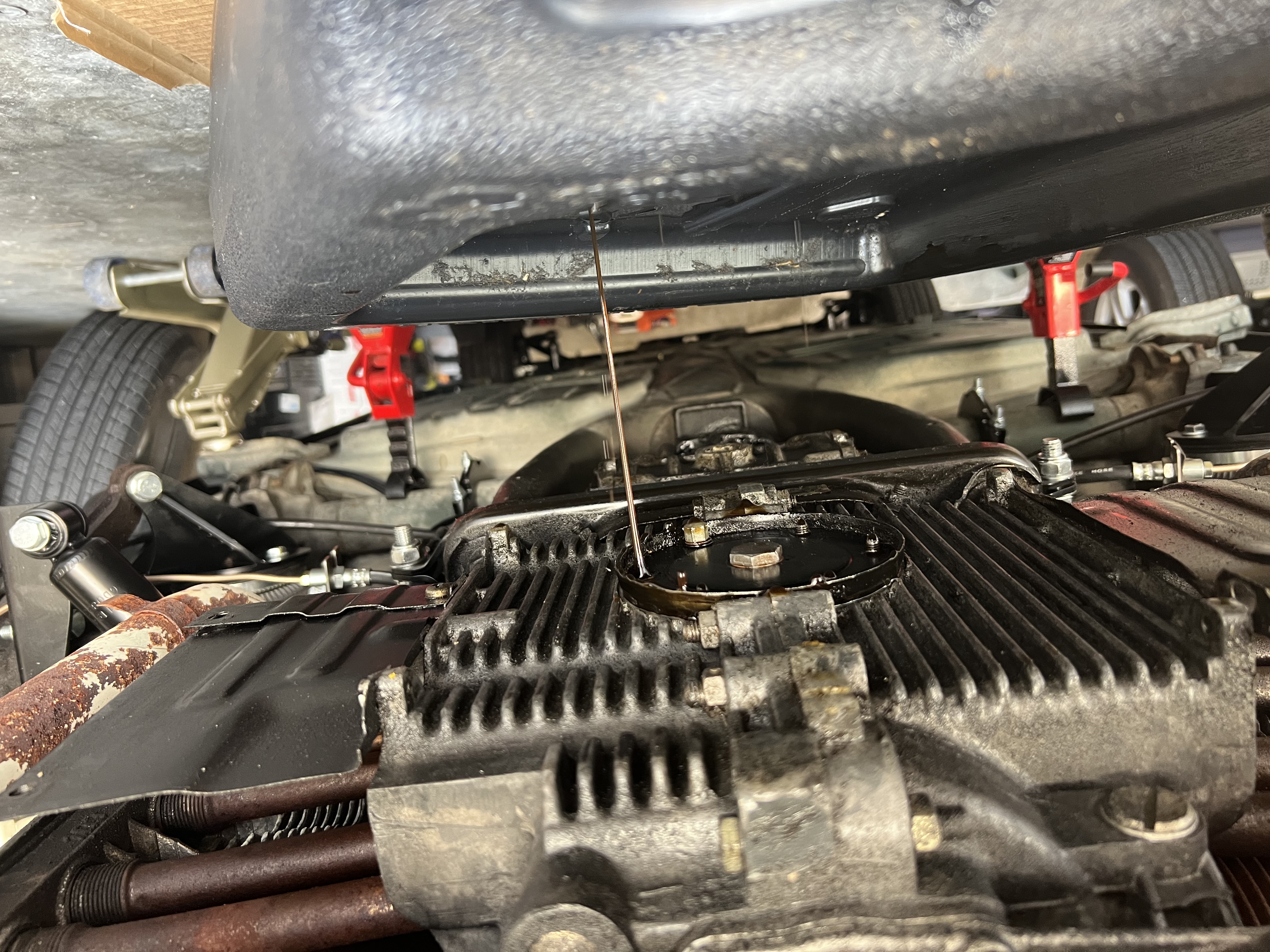 Oil change on these cars is pretty simple. Start by loosening the nuts on the oil pan and letting the oil drain. Once it’s come to a light drip, remove the nuts and carefully remove the plate, gaskets, and filter. The Mexican beetles use an additional oil filter but still have the standard oil filter original beetles came with. Replace both filters and gaskets and tighten the nuts back up, they need to be torqued to 5 foot pounds.